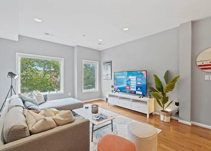 The 5-bedroom Spacious Dc Retreat Two Units 4Br & 5Ba #Dcottage Washington villa offers quick access to such tourist spots as National Air and Space Museum, situated only a 5-minute walk away.